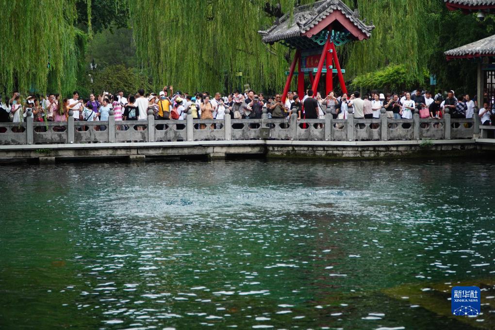 游客在山東省濟南市觀(guān)賞趵突泉,趵突泉是濟南市泉城水利工程的一部分(7月21日攝)。
