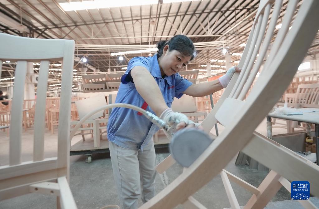 7月28日,工人在河北省唐山市蘆臺經(jīng)濟開(kāi)發(fā)區一家具企業(yè)的生產(chǎn)車(chē)間工作。