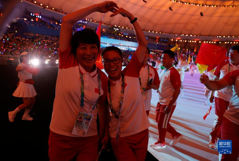 7月28日,中國大學(xué)生體育代表團成員在開(kāi)幕式上。