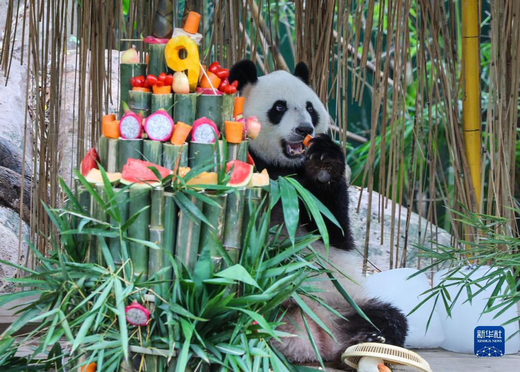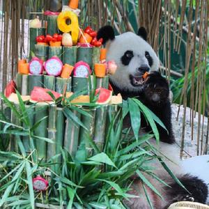 當日,全球唯一的三胞胎大熊貓“萌萌”“帥帥”“酷酷”迎來(lái)九周歲生日,三胞胎于2014年7月29日出生于廣州長(cháng)隆野生動(dòng)物世界華南大熊貓繁育基地。