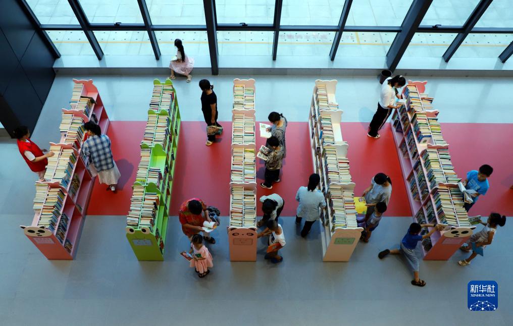暑假期間,許多學(xué)生來(lái)到圖書(shū)館閱讀書(shū)籍,在書(shū)香中度過(guò)快樂(lè )假期。