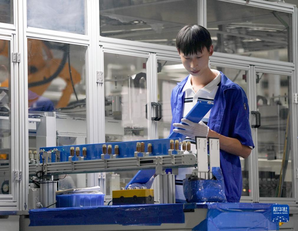 8月1日,工人在襄陽(yáng)比亞迪產(chǎn)業(yè)園生產(chǎn)車(chē)間檢查電池外觀(guān)。