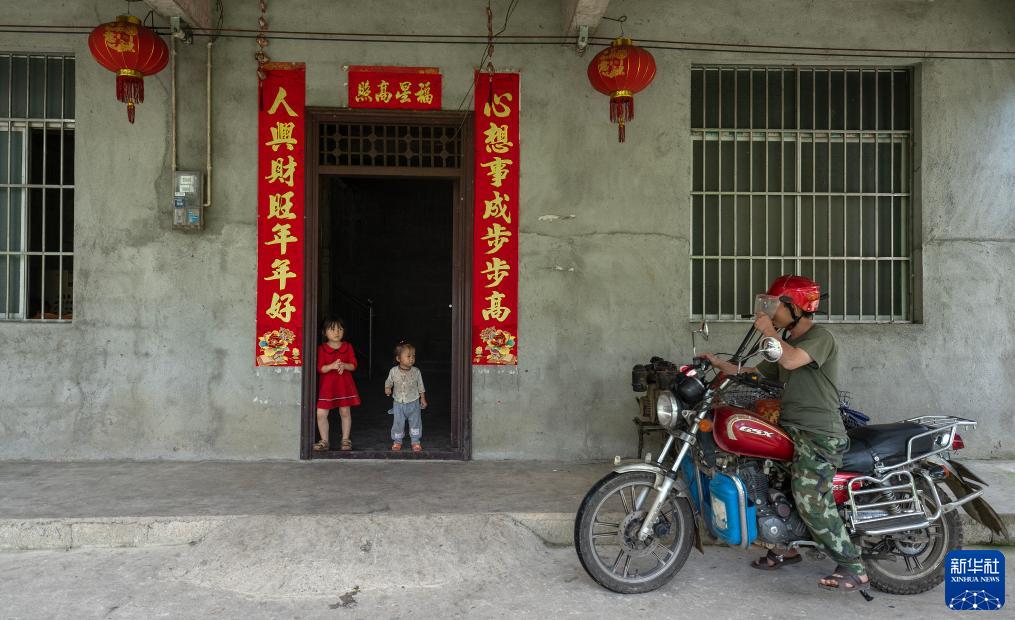 7月30日,陶文學(xué)的兩個(gè)妹妹在迎接父親陶建明從外面歸來(lái)。新華社記者費茂華攝