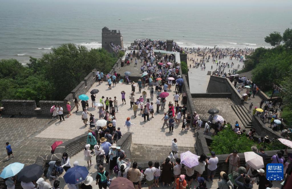 8月2日,游客在河北省秦皇島市山海關(guān)區老龍頭景區游覽。