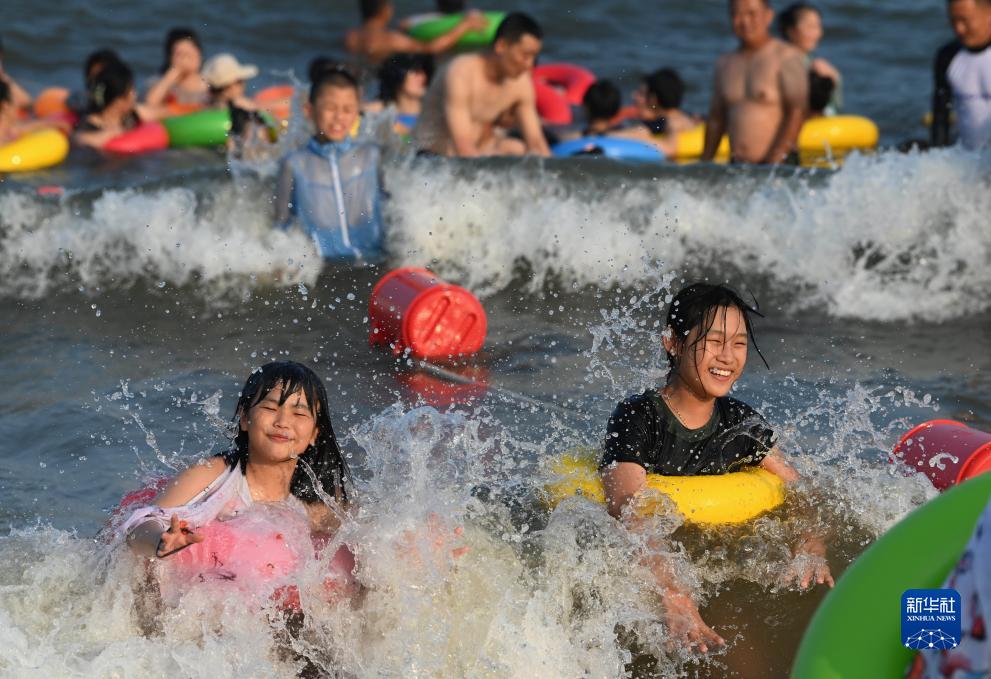8月2日,游客在秦皇島市北戴河區東山浴場(chǎng)戲水。