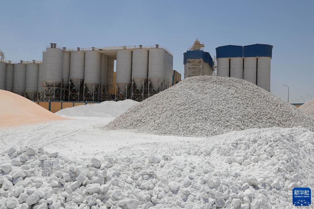 這是6月26日在位于埃及蘇伊士的巨石埃及公司拍攝的原料生產(chǎn)車(chē)間外景。