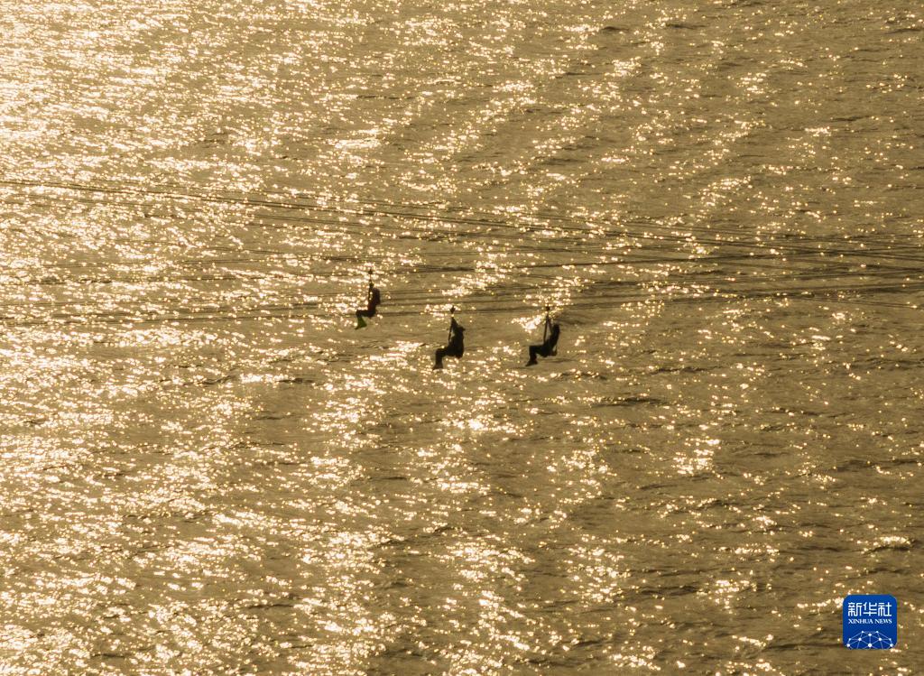 8月2日,游客在寧夏中衛市沙坡頭景區體驗飛渡黃河(無(wú)人機照片)。