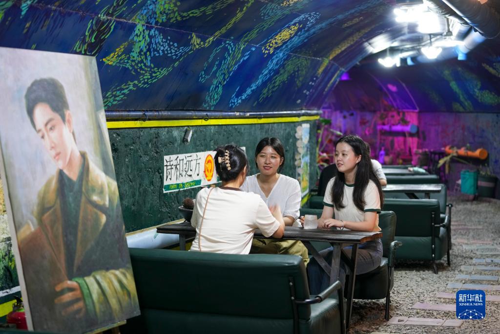 8月2日,人們在重慶市九龍坡區黃桷坪街道的石頭房子藝術(shù)空間避暑納涼。