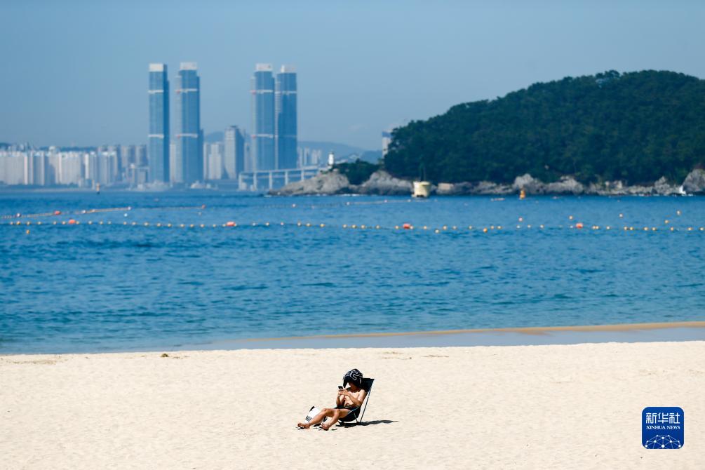 8月3日,市民在韓國釜山的沙灘曬日光浴。