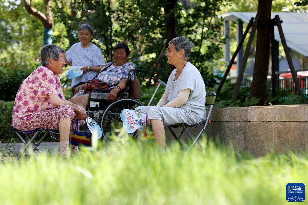8月3日,在改造后的合肥市瑤海區鐘油坊大郢城中村改造項目,老人在小區里休閑。