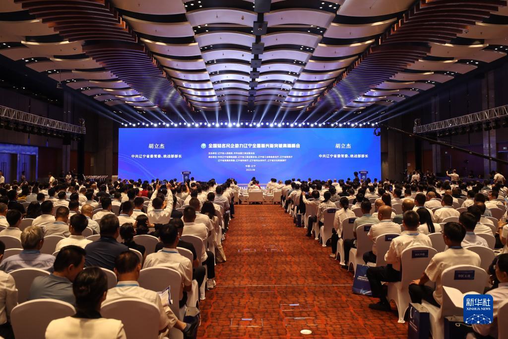 這是8月3日在遼寧沈陽(yáng)拍攝的全國知名民企助力遼寧全面振興新突破高端峰會(huì )開(kāi)幕式現場(chǎng)。