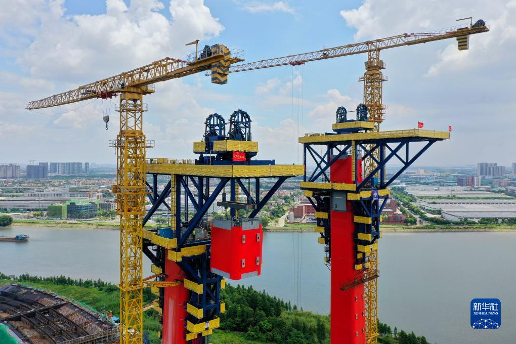 位于廣東佛山市順德區的順德大橋是超大跨徑鋼混組合索塔斜拉橋,由中交路建承建,主橋全長(cháng)992.5米,主跨626米,索塔采用變截面H型塔柱,塔高分別為204米、151米。目前,承建單位正采用自主研發(fā)的“智能鋼塔提升機”進(jìn)行順德大橋主塔和橫梁無(wú)支架整體安裝作業(yè)。大橋建成后將有效打通順德融入粵港澳大灣區“一小時(shí)交通圈”的內部區域道路瓶頸。
