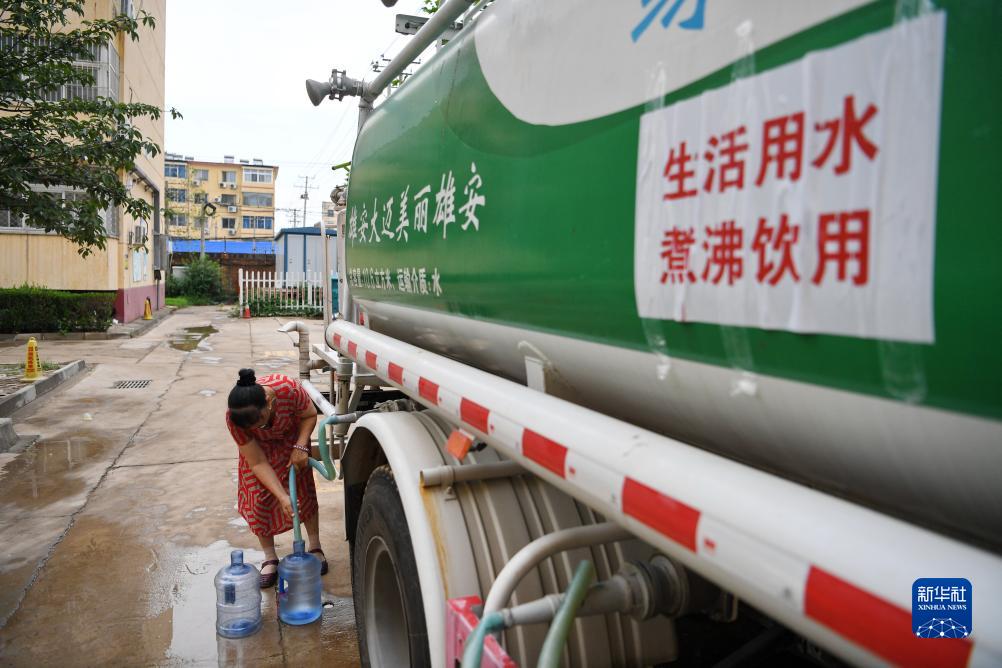 8月4日,河北省涿州市新星小區居民從供水車(chē)里接水。