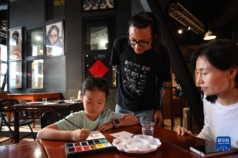 8月5日,小朋友在藝術(shù)課堂上學(xué)習畫(huà)畫(huà)。
