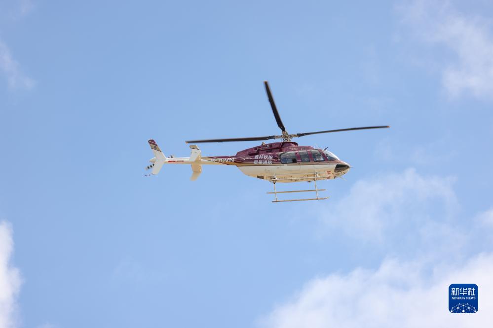 8月5日,搜救隊員利用直升機在吉林省舒蘭市七里鄉開(kāi)展救援工作。