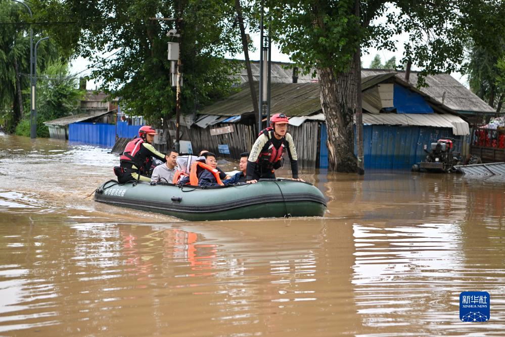 8月5日,哈爾濱森林消防支隊戰士在黑龍江省哈爾濱市延壽縣轉移受困群眾。