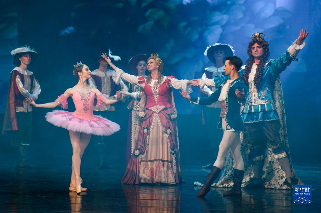 白俄羅斯國家大劇院芭蕾舞團演員在《睡美人》中表演(7月25日攝)。