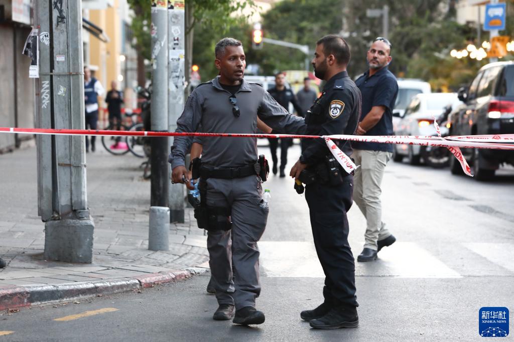 8月5日,在以色列特拉維夫,警察在槍擊現場(chǎng)警戒。