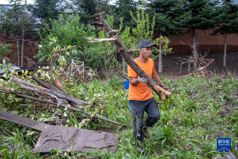 8月6日,在大海林林業(yè)局有限公司自來(lái)水供應站,工作人員在清理院舍。