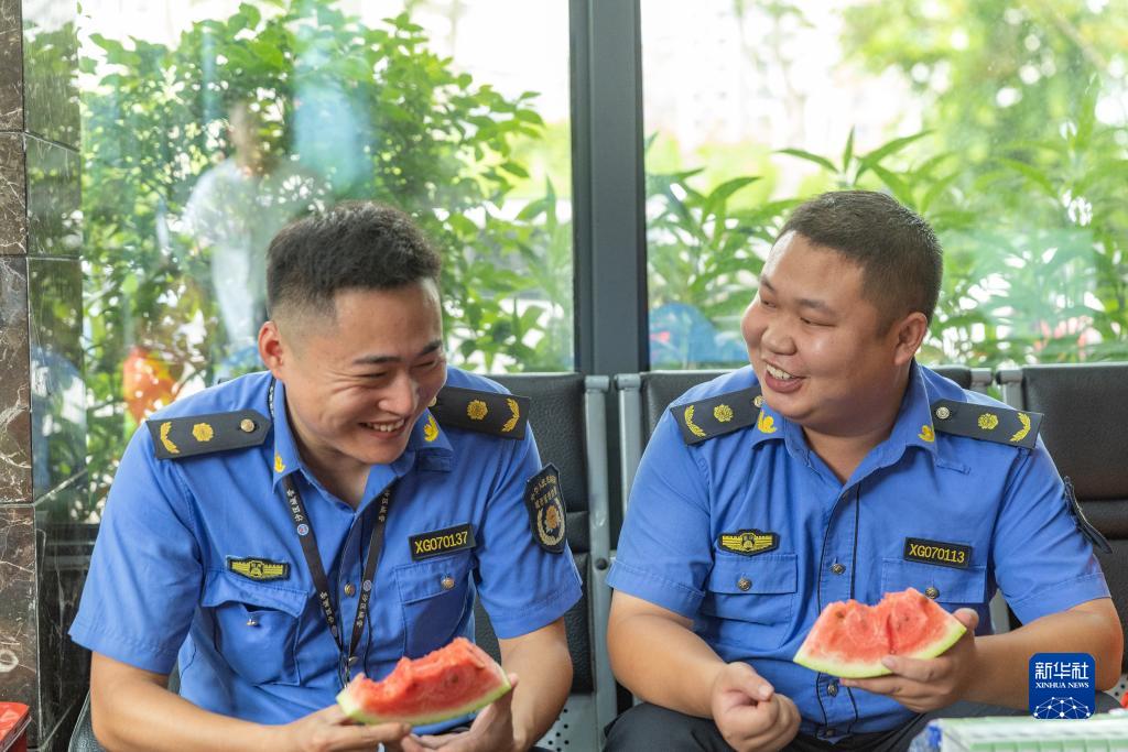 連日來(lái),重慶市持續高溫。重慶市沙坪壩區建立的“勞動(dòng)者港灣”成為許多戶(hù)外勞動(dòng)者歇腳避暑的去處。