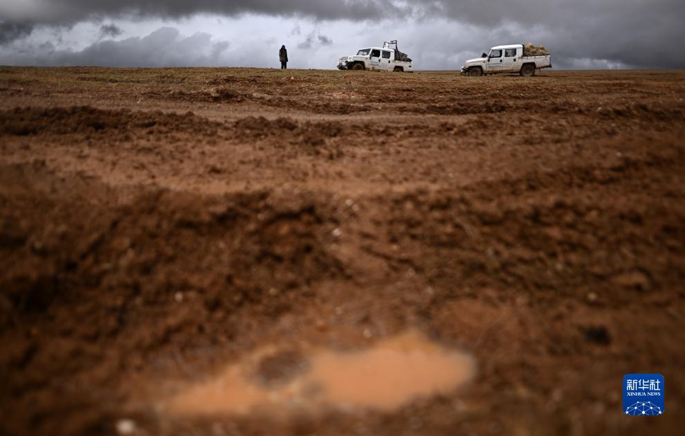可可西里管理處卓乃湖保護站隊員在對受困車(chē)輛開(kāi)展救援(6月16日攝)。