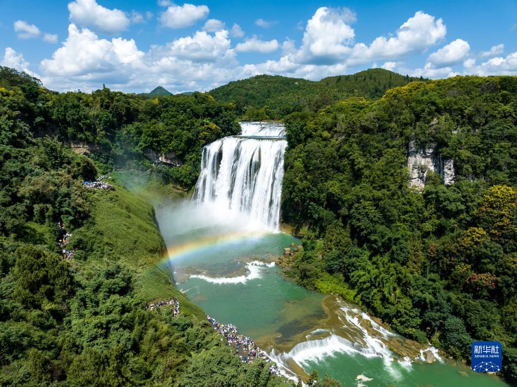 初秋時(shí)節,位于貴州省安順市的黃果樹(shù)瀑布景區進(jìn)入一年中的最佳觀(guān)賞期。大瀑布奔騰而下、氣勢磅礴,前來(lái)觀(guān)賞游玩的游客絡(luò )繹不絕。