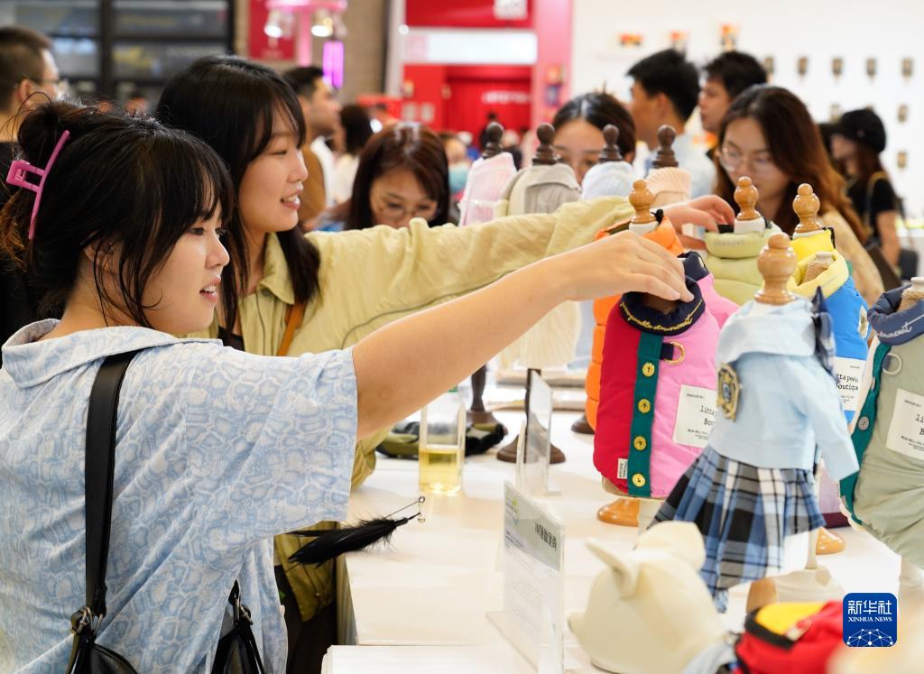 8月16日,觀(guān)眾在第25屆亞洲寵物展覽會(huì )寵物服裝展臺參觀(guān)。