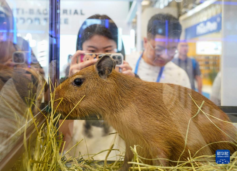 8月16日在第25屆亞洲寵物展覽會(huì )上拍攝的水豚。