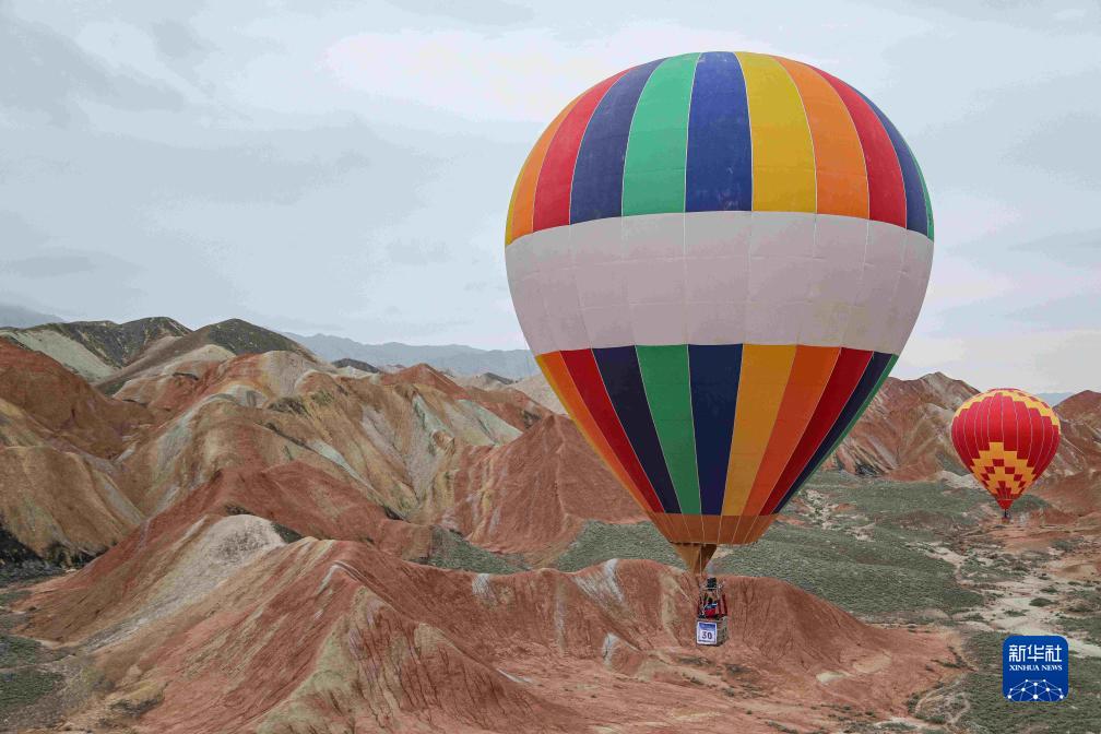 當日,甘肅張掖第三屆張掖七彩丹霞熱氣球嘉年華在七彩丹霞景區拉開(kāi)帷幕。來(lái)自全國各地的熱氣球運動(dòng)員駕乘熱氣球,在七彩丹霞上空進(jìn)行飛行表演,上演熱氣球與丹霞的美麗邂逅。