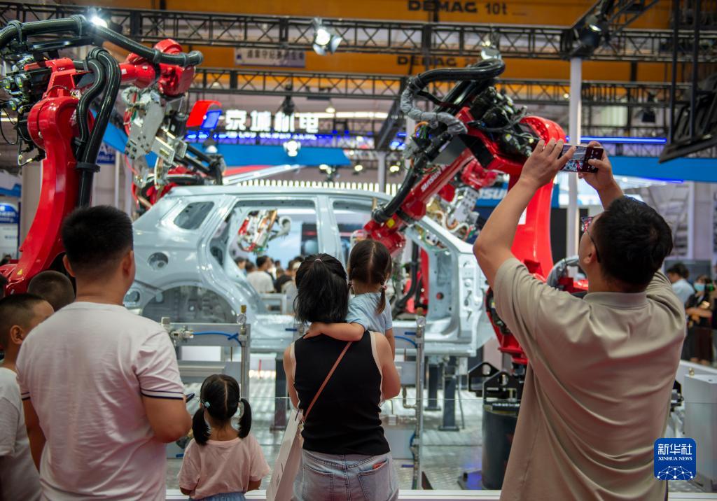 8月17日,參觀(guān)者在2023世界機器人大會(huì )“機器人+制造業(yè)”區域參觀(guān)。