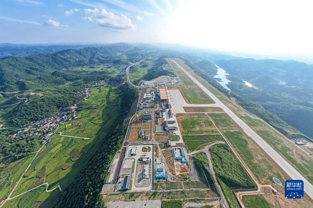 這是8月17日在湖南省湘西土家族苗族自治州花垣縣花垣鎮老天坪村拍攝的湘西邊城機場(chǎng)(無(wú)人機照片)。