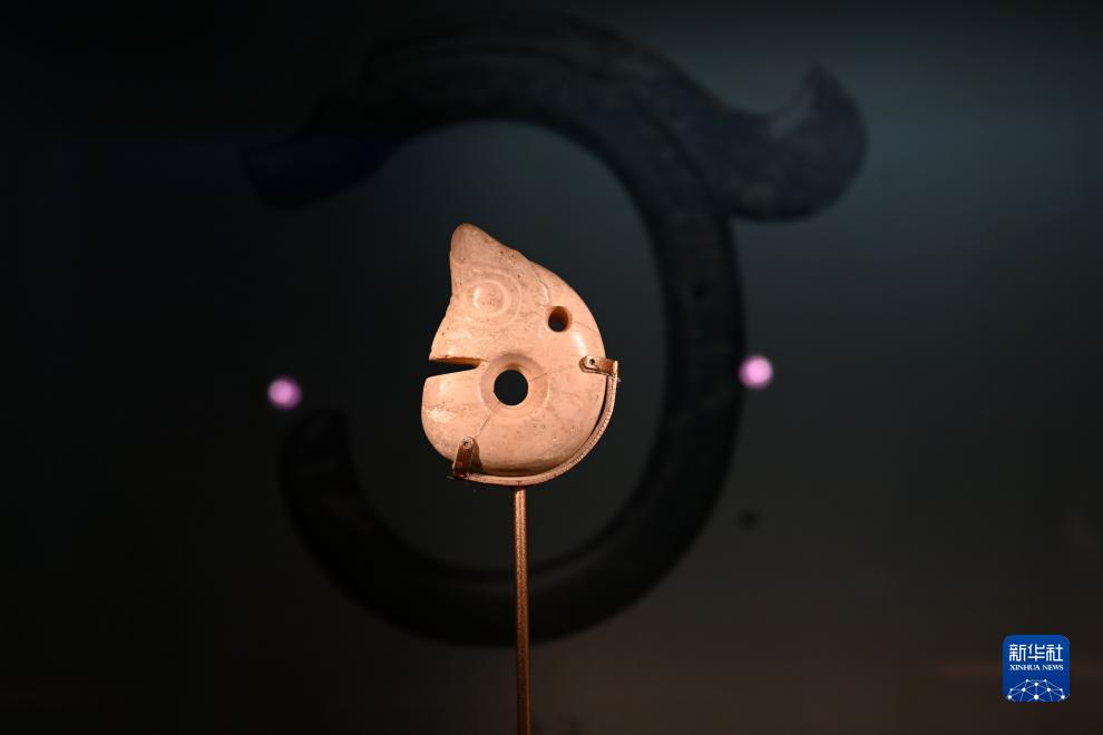 8月18日在中國國家博物館“中國古代玉器”專(zhuān)題展覽上拍攝的紅山文化玦形龍。