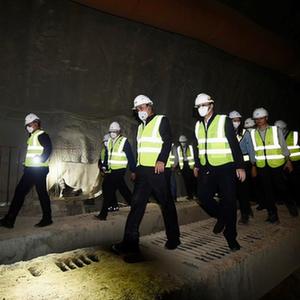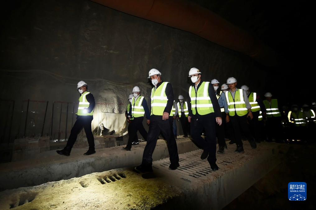 8月17日,泰國總理巴育(中)在沙拉武里府視察中泰鐵路施工段。