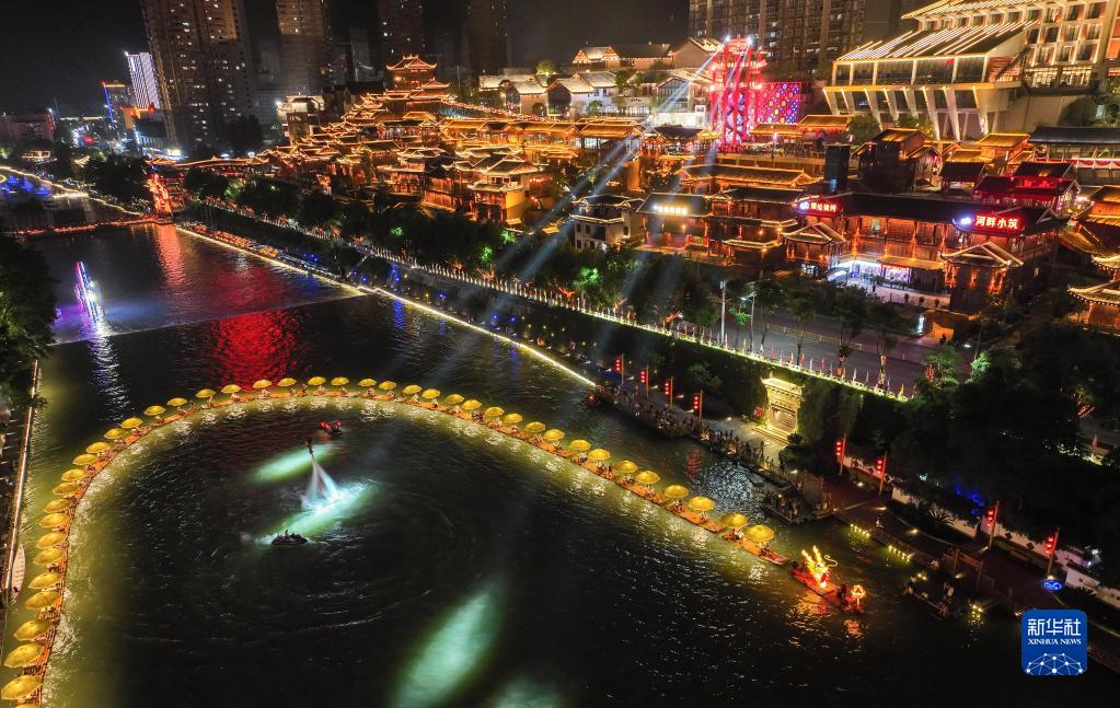 湖北省恩施土家族苗族自治州宣恩縣以穿城而過(guò)的貢水河為軸心,圍繞“景城一體,主客共享”理念,打造以縣城為核心的國家4A級風(fēng)景區。入夜時(shí)分,市民和游客逛親水步道、賞璀璨夜景、品地方小吃、乘竹筏游河。豐富的夜游生活,使這座山區小城的“夜經(jīng)濟”持續火熱。