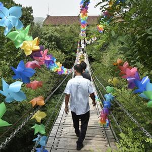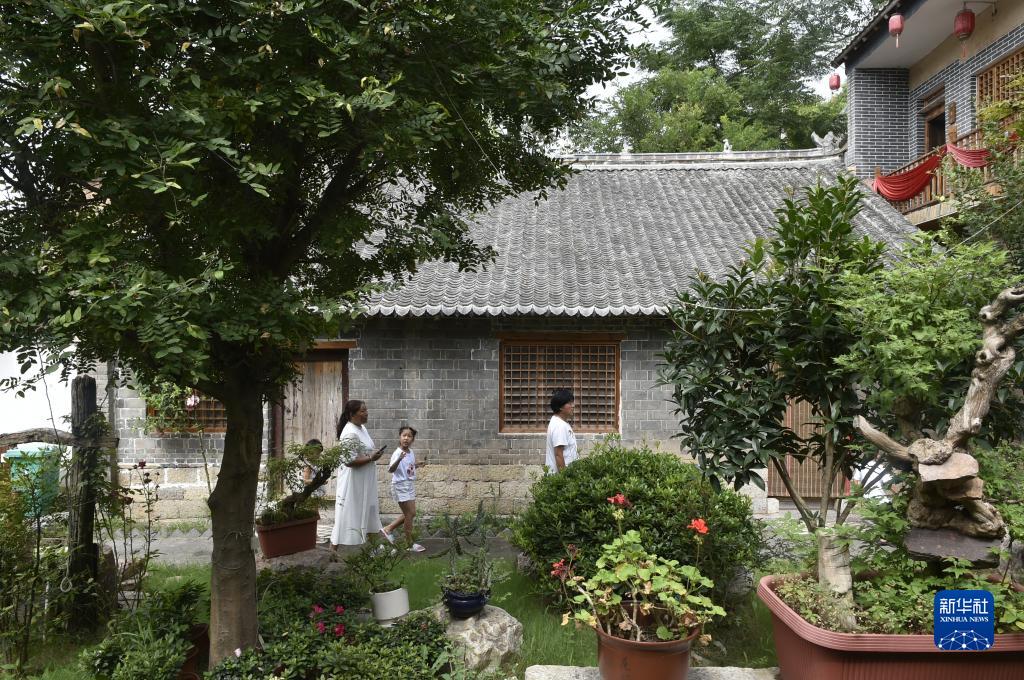 8月18日,游人在汝州市陵頭鎮王灣民俗村游覽。