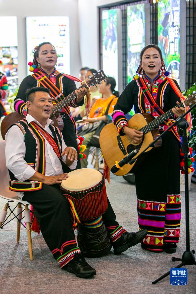 8月18日,演員在文化旅游館內的普洱展區表演傳統歌曲。