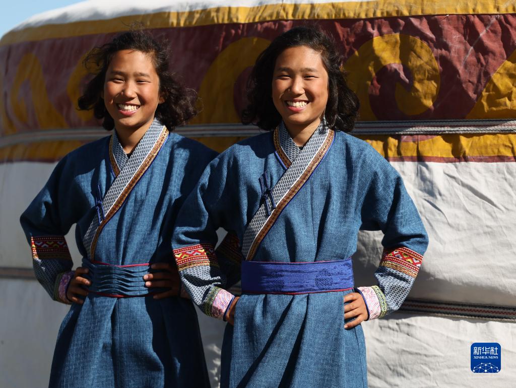 這是8月19日在蒙古國泰吉山谷拍攝的文化節上的一對蒙古國雙胞胎,一個(gè)叫鐵木真,一個(gè)叫鐵木蘭。