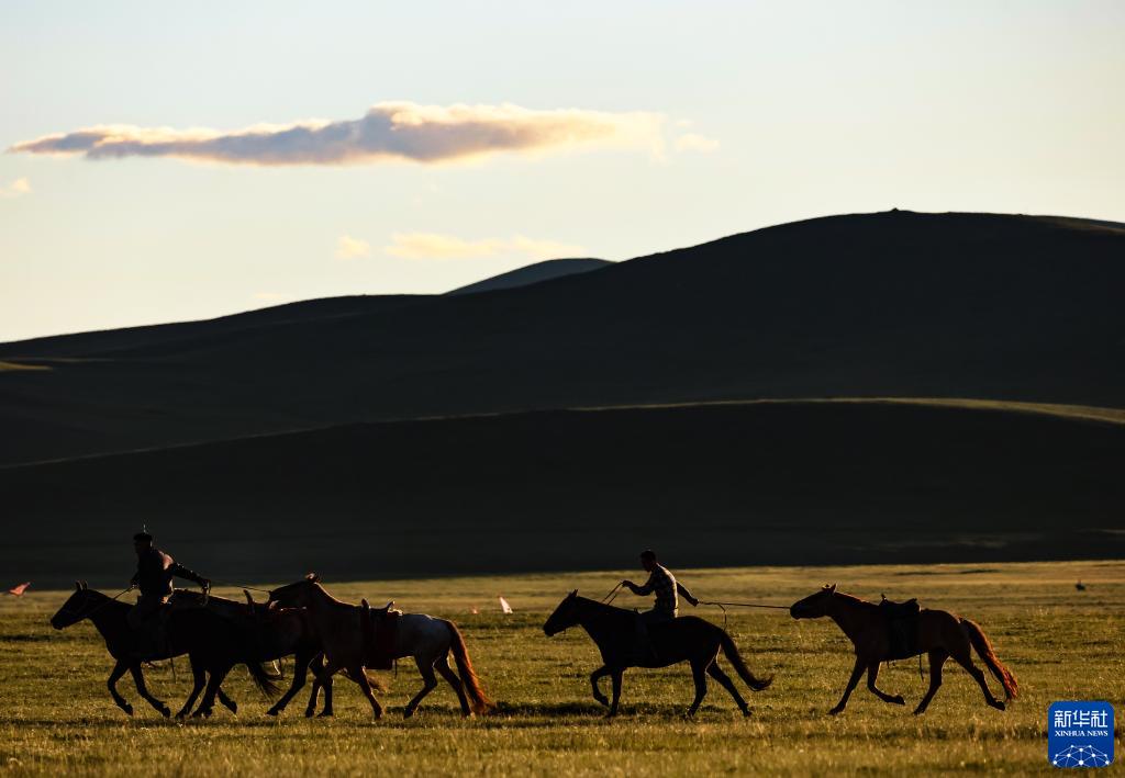 8月18日,在蒙古國泰吉山谷,牧人將自己的馬匹收攏。