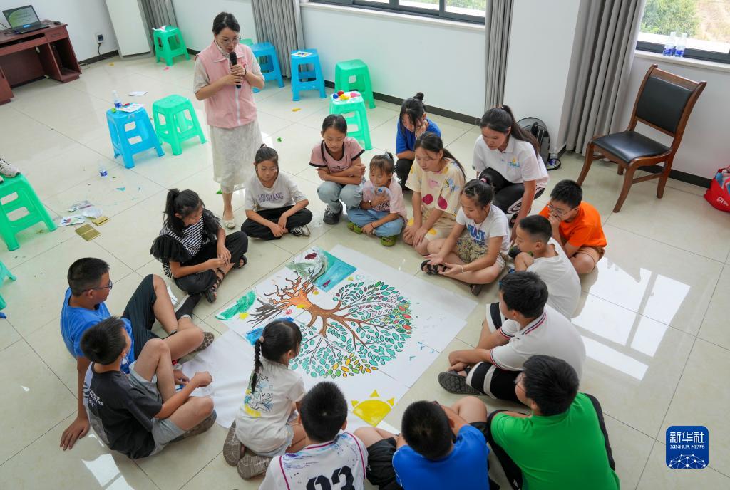 8月24日,在重慶市九龍坡區新民村村委會(huì )活動(dòng)室內,孩子們在心理咨詢(xún)師志愿者的指導下進(jìn)行互動(dòng)小游戲。新華社記者 劉潺 攝