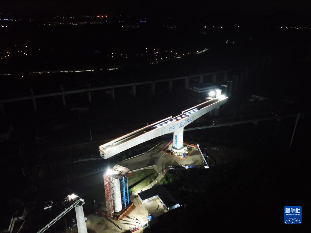 當日,由中鐵八局承建的貴南高鐵引入貴陽(yáng)樞紐鐵路尖坡寨特大橋在貴州省貴安新區成功轉體。據了解,此次轉體的混凝土箱梁長(cháng)約160米,重達7500噸,轉體角度約為41度,成功跨越已開(kāi)通運營(yíng)的滬昆高鐵既有線(xiàn)。