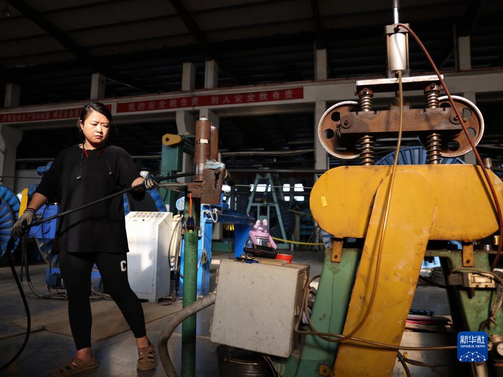 8月24日,工人在河北省邢臺市寧晉縣金世紀電纜集團有限公司生產(chǎn)車(chē)間工作。
