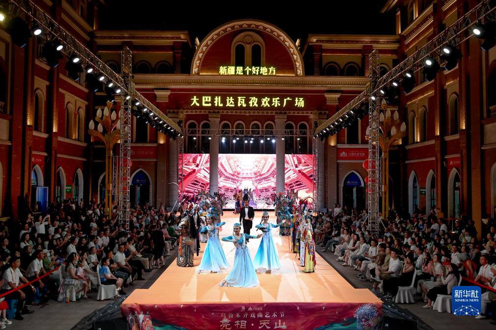 烏魯木齊戲曲藝術(shù)節閉幕式暨“亮相·天山”時(shí)尚京劇秀活動(dòng)在新疆國際大巴扎景區舉行(6月22日攝)。