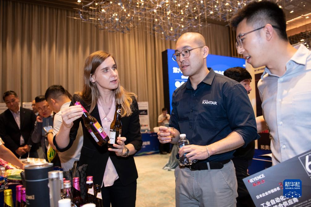 8月29日,在深圳舉行的進(jìn)博會(huì )展前供需對接活動(dòng)上,波蘭投資貿易局的工作人員(左前)向采購商展示風(fēng)味啤酒。