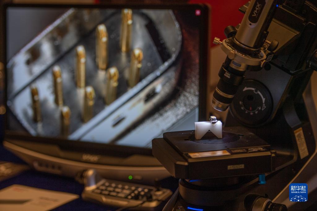 8月29日在深圳拍攝的進(jìn)博會(huì )展前供需對接活動(dòng)上參展商展示的一款顯微系統。