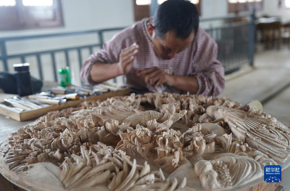 8月31日,木雕藝人在進(jìn)行木雕創(chuàng )作。