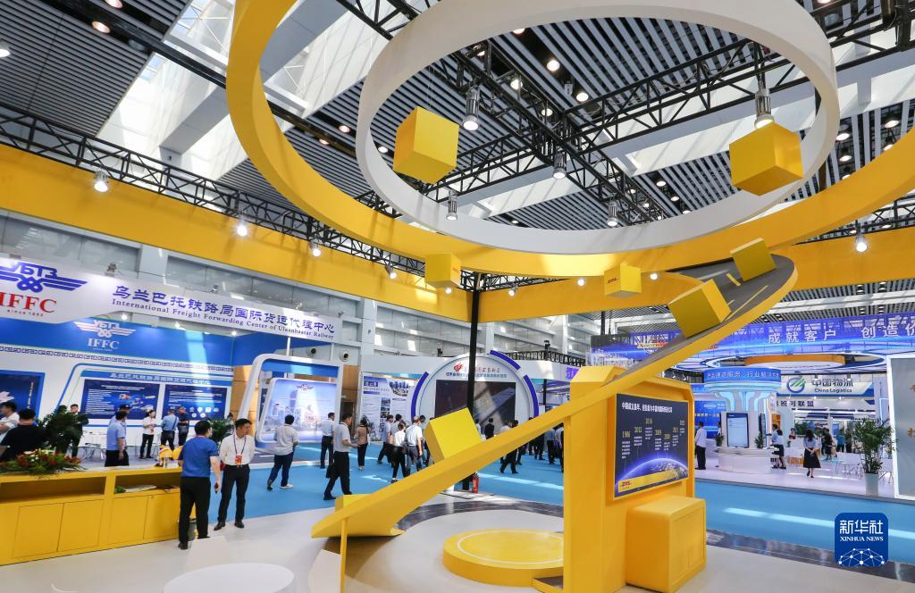 8月31日,觀(guān)眾在第八屆中國(連云港)絲綢之路國際物流博覽會(huì )上參觀(guān)。