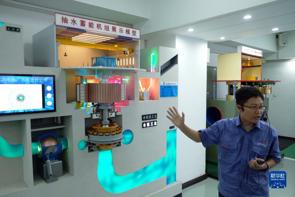 8月31日,哈電集團哈爾濱電機廠(chǎng)有限責任公司總專(zhuān)業(yè)師王煥茂在水力發(fā)電設備實(shí)驗室介紹抽水蓄能機組工作原理。作為我國發(fā)電設備制造業(yè)的領(lǐng)軍企業(yè),70多年來(lái),哈電集團堅持科技領(lǐng)先和轉型升級,創(chuàng )下了涵蓋水電、火電、核電等領(lǐng)域200多項“中國第一”。