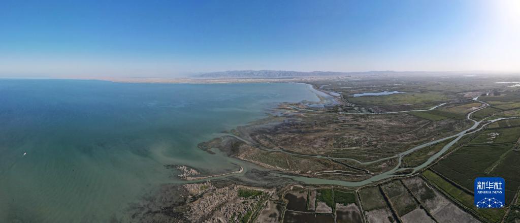 開(kāi)都河匯入新疆博斯騰湖(8月31日攝,無(wú)人機全景照片)。