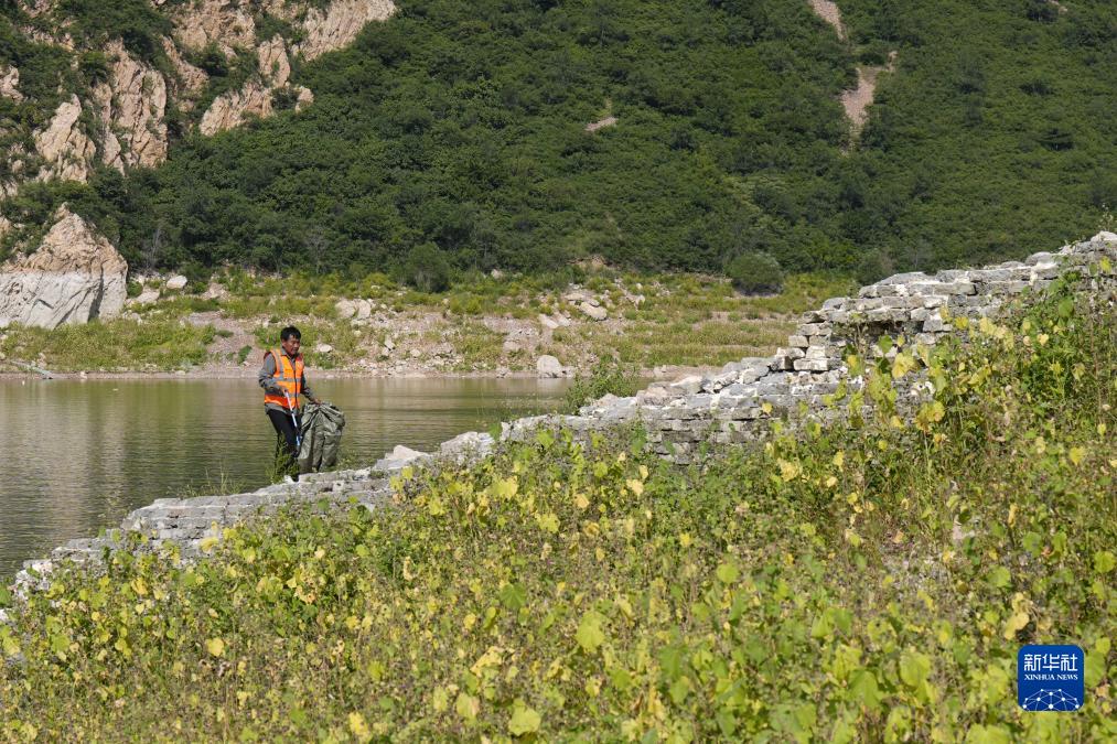 8月30日,衡丙三在長(cháng)城上撿拾垃圾。