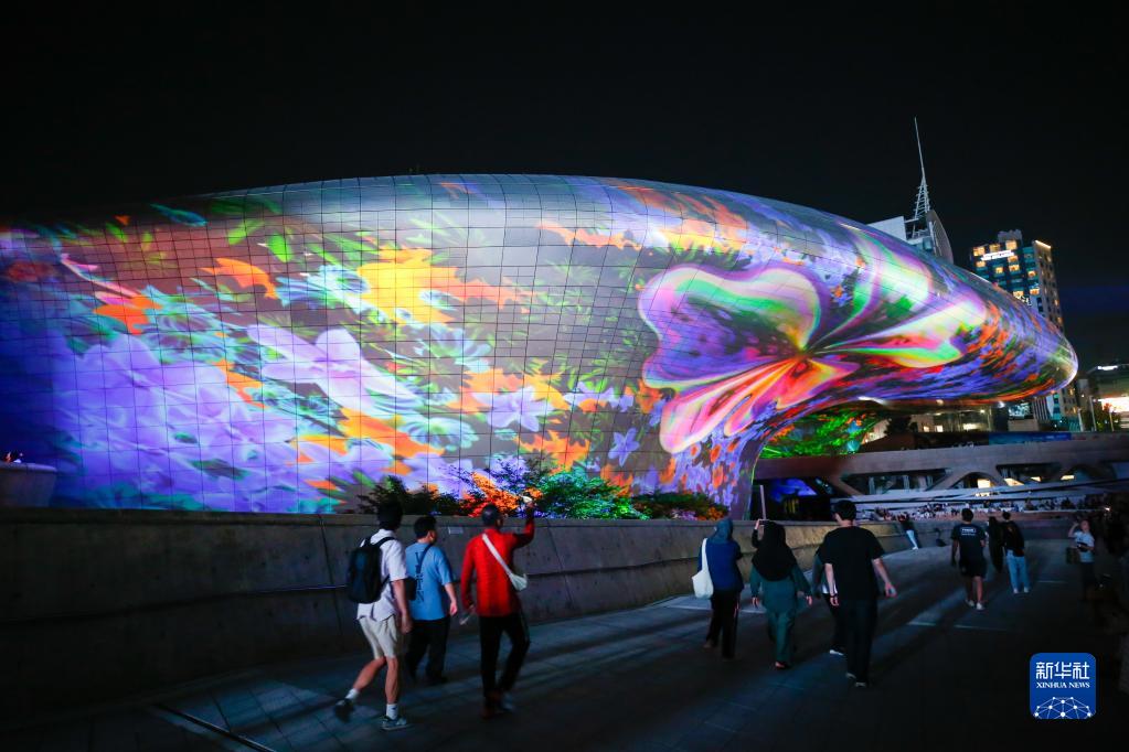 9月1日,人們在韓國首爾東大門(mén)設計廣場(chǎng)觀(guān)看燈光秀。